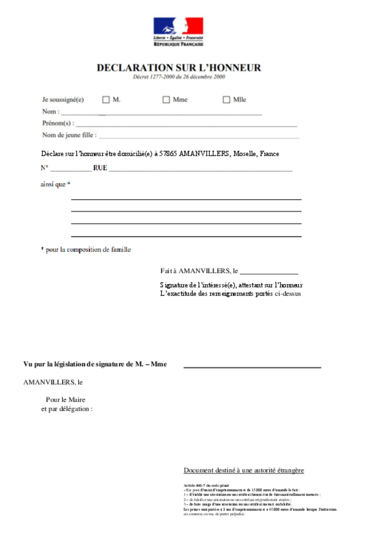 Déclarations sur l’honneur....