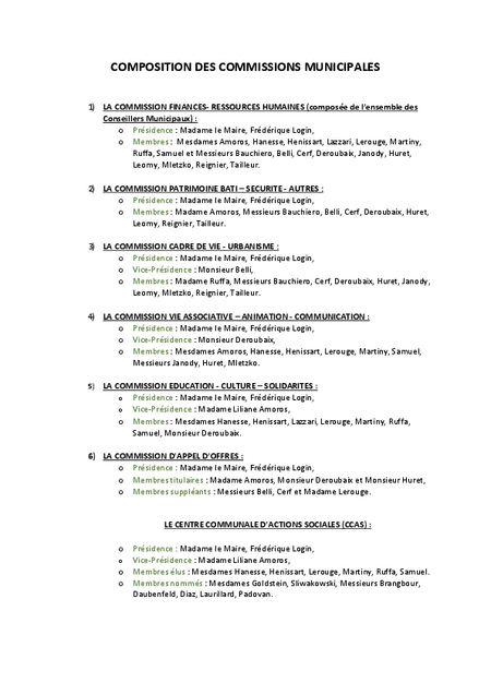 Les représentants dans les commissions ont été redéfinies lors du conseil municipal du 29 avril 2021 (POINT N°04)