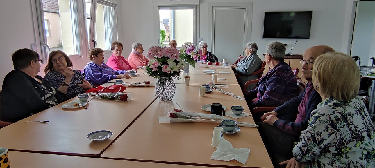 Jeudi après-midi 23 mai, pour fêter les mamans, Madame le Maire, des élus et des bénévoles ont partagé un goûter gourmand avec les locataires de la Résidence à la salle commune de la Pariotte.