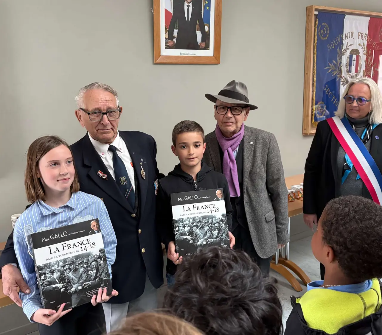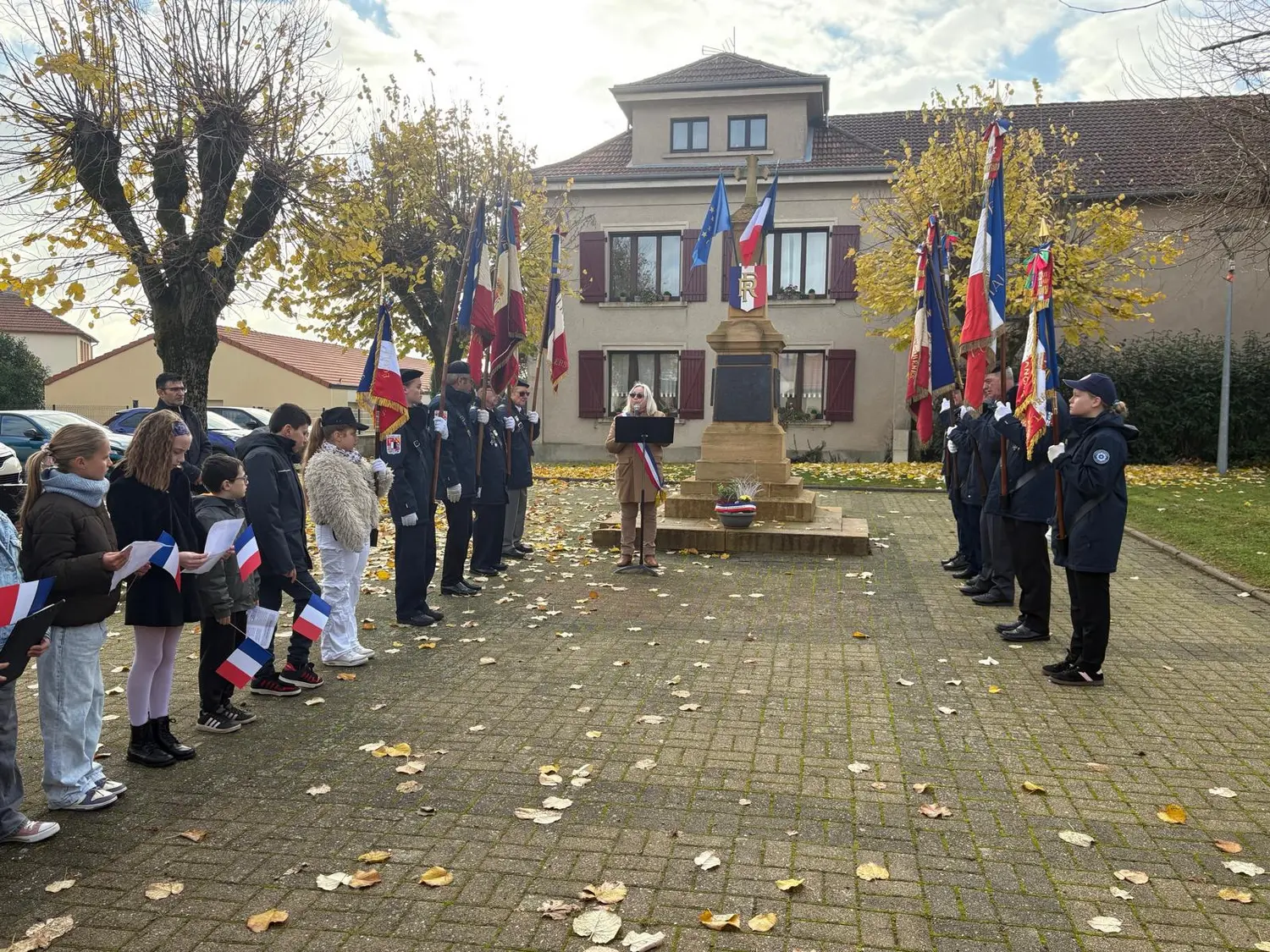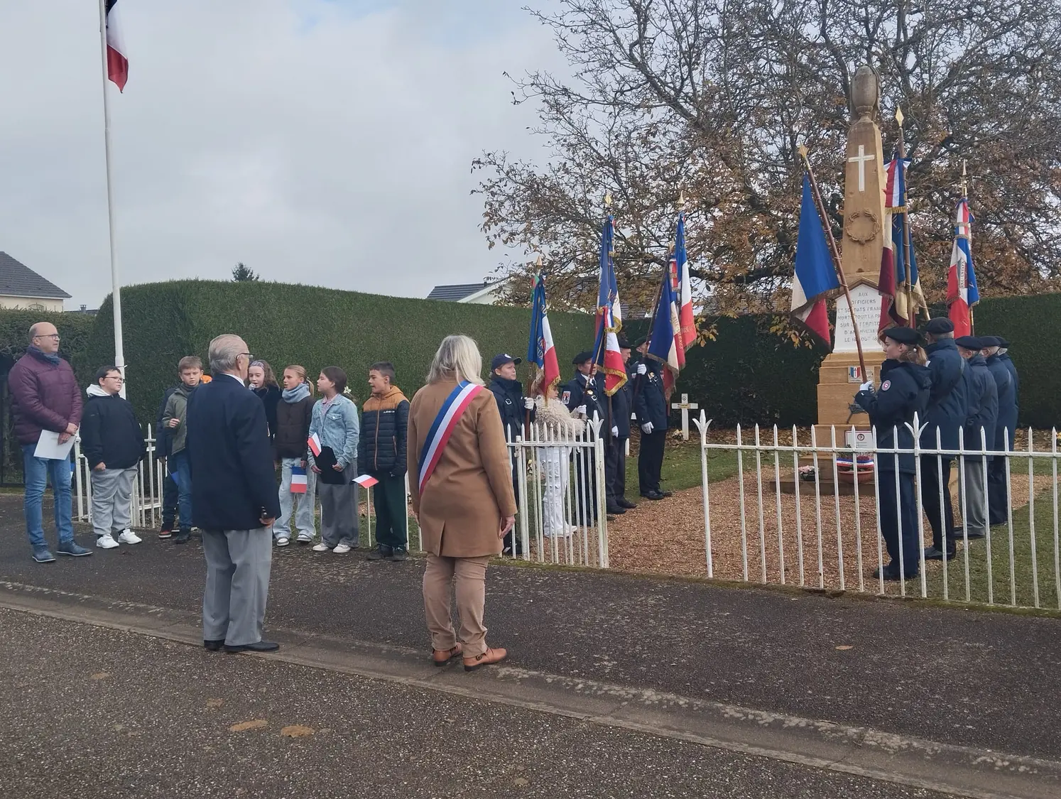 Cérémonie qui a eu lieu le dimanche 9 novembre 2025, en présence d'élus, de porte-drapeaux, du Président de L'Union Nationale des anciens combattants, d'élèves de CM1 et de CM2, de leurs enseignants et d'un nombreux public.