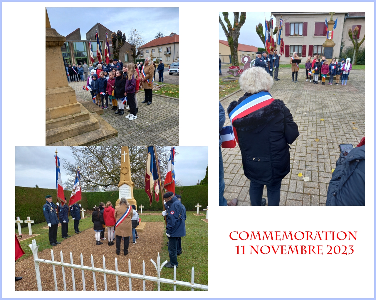 Cérémonie très digne en présence de Madame le Maire, d'adjoints, de conseillers municipaux, de représentants de l'UNC (Union Nationale des Combattants) et d'enfants du groupe scolaire aux Monuments aux Morts. A l'issue de la cérémonie, un petit goûter a été distribué aux enfants.