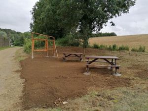 Un grand merci à l'association « Pieds et Roues » qui, après avoir œuvré pour la réalisation de silhouettes de marcheurs en métal, a réalisé le mobilier de cette superbe aire de repos et de pique-nique à l'entrée d'Amanvillers, côté Châtel Saint Germain.