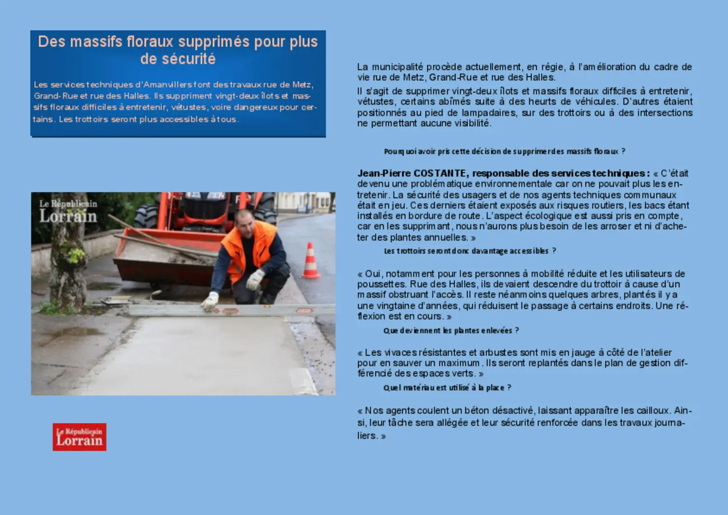 Merci aussi à René Cerf, adjoint en charge des espaces verts, à Jean Pierre Costante et à Jean louis Tailleur qui expliquent ces pratiques aux agents pour leur mise en application sur le terrain et échangent aussi avec les administrés sur ces nouvelles manières de faire.