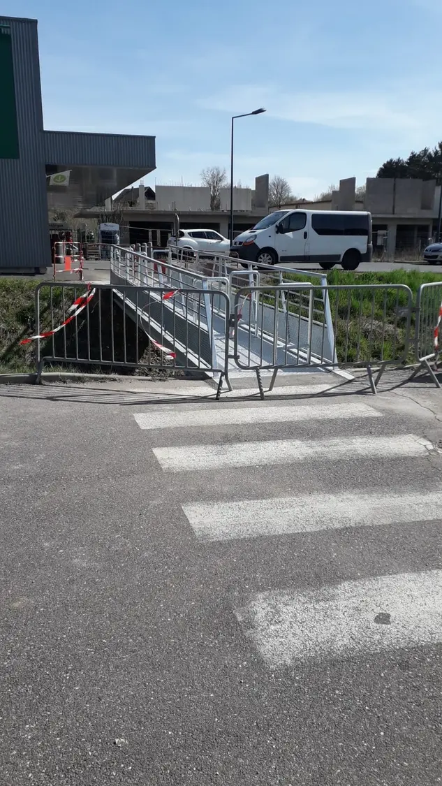 Pose d'une passerelle piétons à proximité de Carrefour express