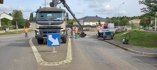 Mardi 28 septembre 2021 Reprise de l’affaiblissement au Carrefour à feux tricolores rue de Metz par l’entreprise Jean LEFEBVRE commande du service voirie de l’EUROMETROPOLE DE METZ.