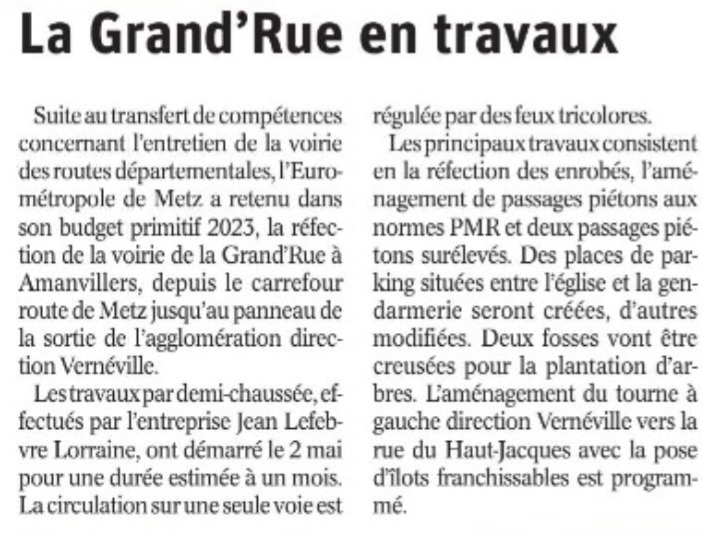 Travaux sur grand-rue et rue de Metz