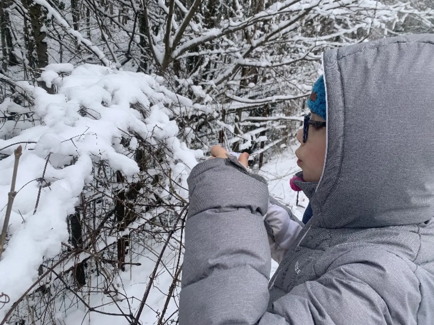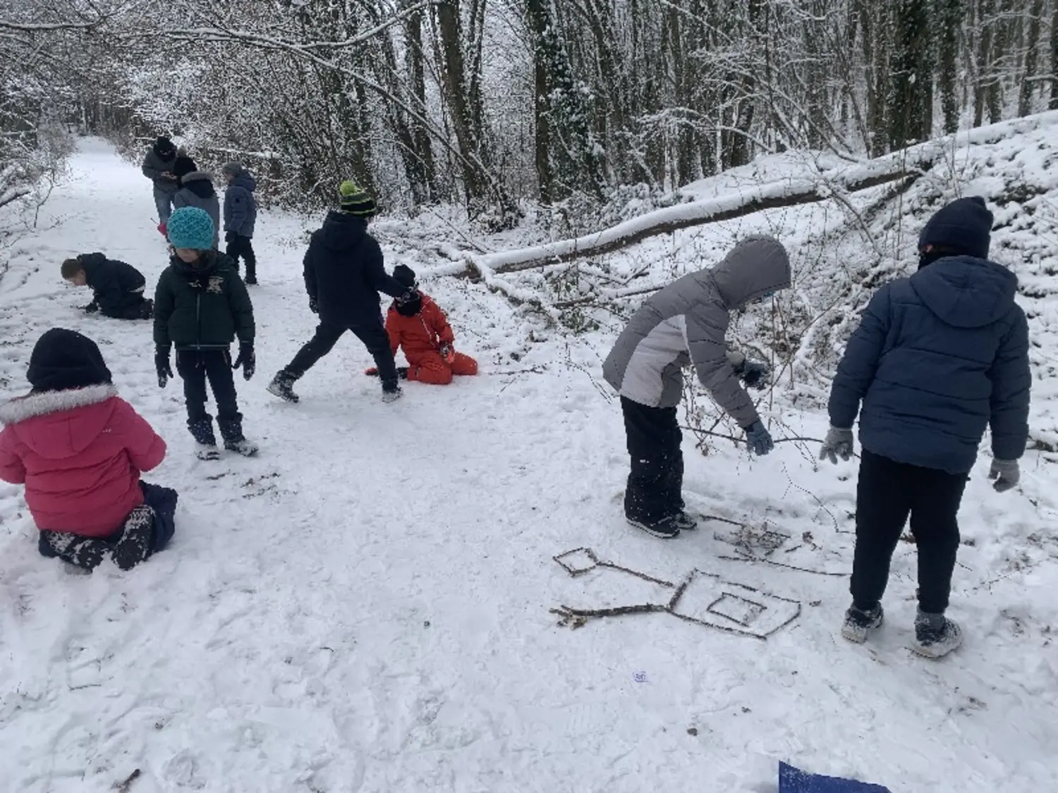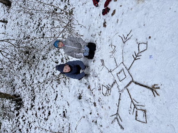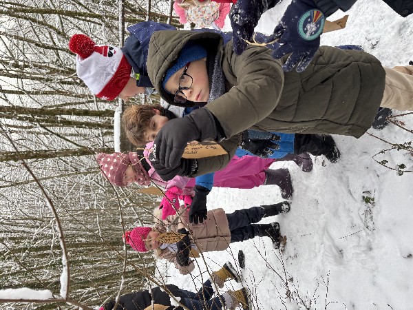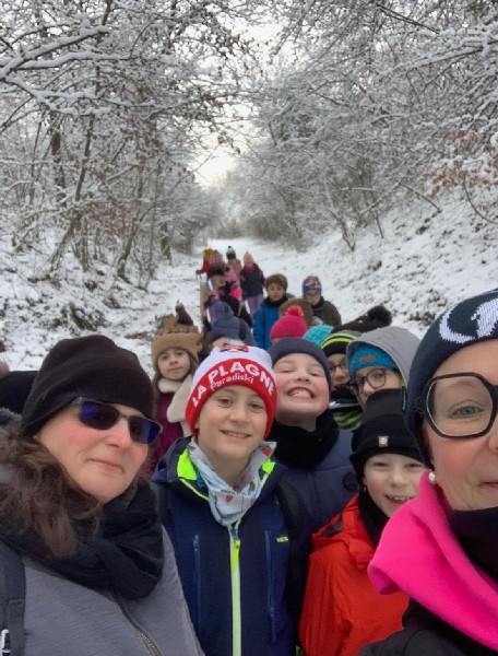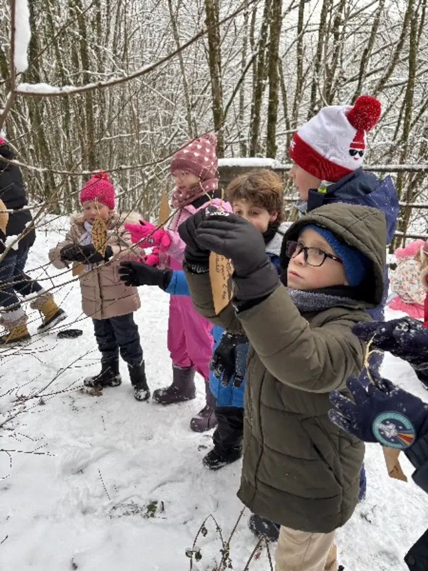 En parallèle, Mme Marck-Payan a débuté son école de la forêt et je continue à faire classe dehors tous les 15 jours sur le site de l'ATE. Nous y sommes allées cette semaine dans la neige, elle et moi.