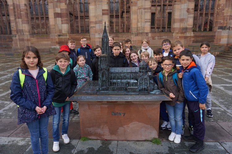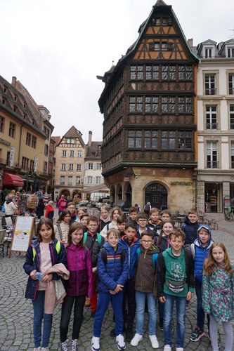 Grâce à une subvention de la municipalité de 1500€, la classe de CM2 de M. MOUROT a pu faire une longue visite pédagogique de la ville de Strasbourg : départ à 8h13 et retour à 21h13 en TGV. Visites de la cathédrale, de l'horloge astronomique et de ses rues voisines, du quartier de La Petite France, du Musée alsacien avec une intervenante sur le thème 'Habiter une maison alsacienne" sans oublier les boutiques de souvenirs...Croisière sur l'Ill de 1h10 jusqu'au Parlement européen. Repas pris au restaurant avec des spécialités alsaciennes comme la Flammenkueche traditionnelle ou les Spaetzle.
