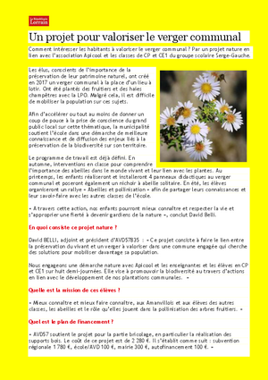- Printemps 2021 : les enfants réaliseront et installeront 4 panneaux didactiques au verger communal et poseront également un nichoir à abeille solitaire.