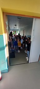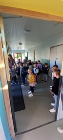 Madame le Maire, des élus, le responsable des services techniques et quelques administrés ont accueilli les sapeurs-pompiers et Ethan, petit ambassadeur de 4 ans, accompagné de sa grande sœur et de ses parents dans l'enceinte du groupe scolaire : « c'est un plaisir de vous recevoir dans notre groupe scolaire et un bonheur de voir Ethan au milieu des enfants ». Ils ont ainsi pu emprunter et apprécier la rampe PMR qui vient d'être aménagée.