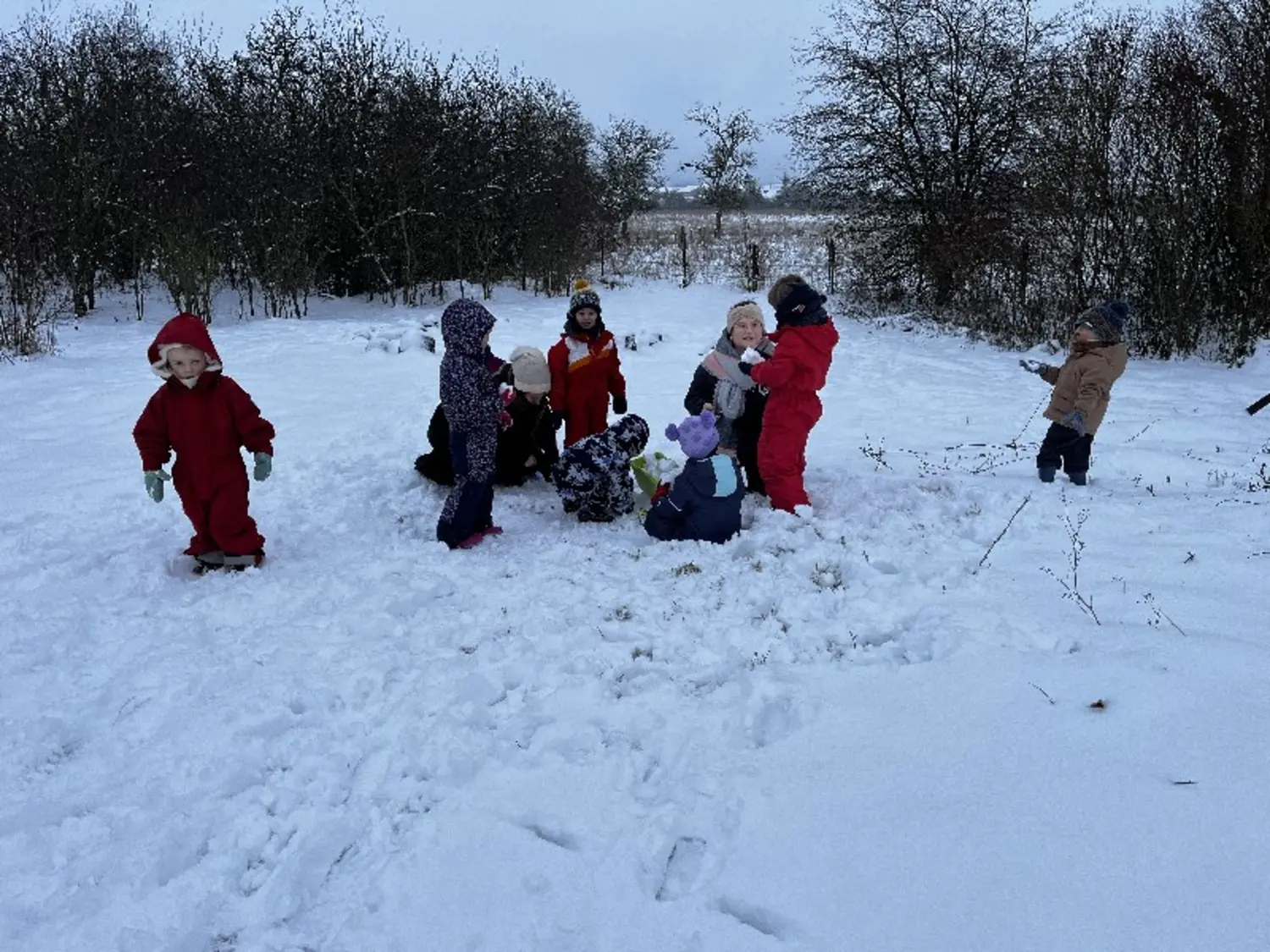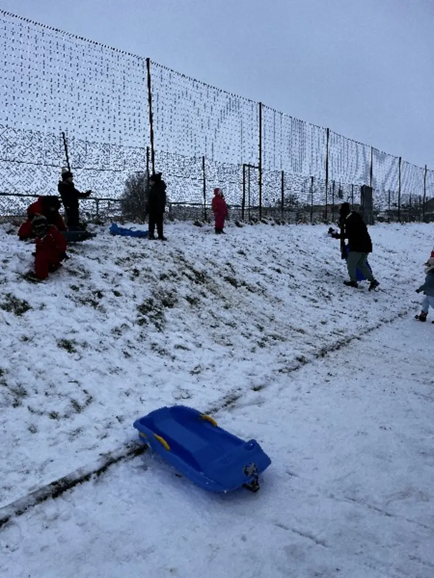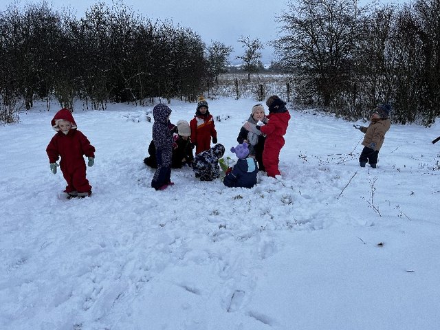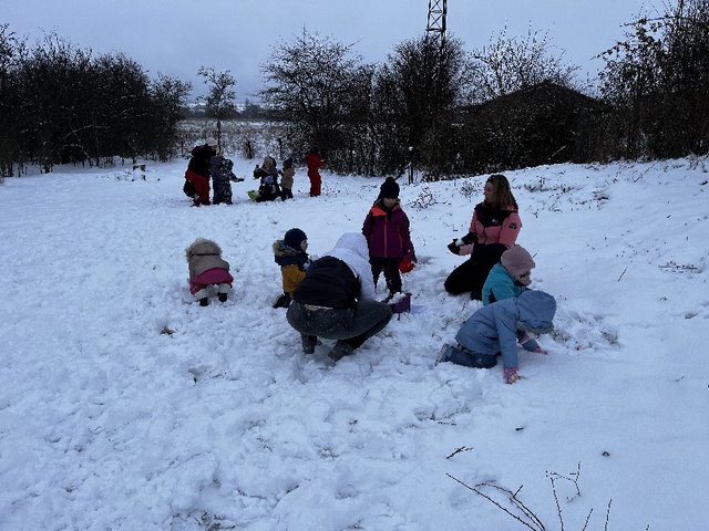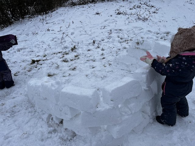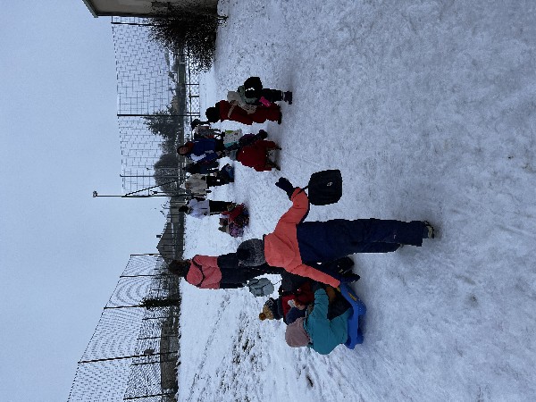 Nous avons débuté la réalisation d'un igloo avant la pluie, nous avons peint avec de la peinture végétale à base de jus de chou rouge, nous y avons fait de la luge.