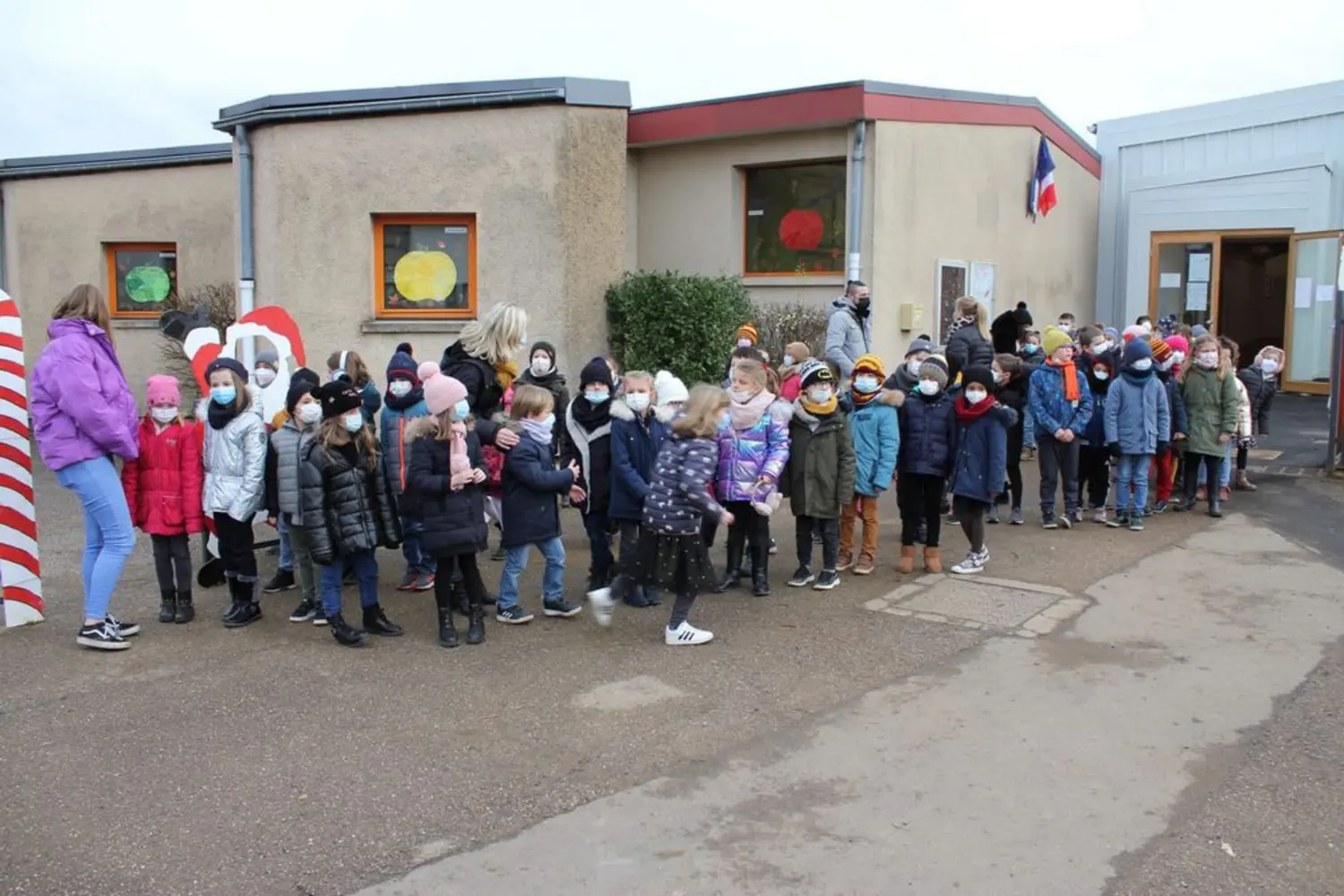 Malgré le contexte sanitaire contraignant et morose, le Père Noël et la municipalité ont tenu à préserver l'esprit de Noël et de fête aux écoles.