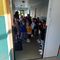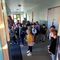 -accès aux classes limité à 10 personnes : aucun problème, parents et enfants attendent patiemment de pouvoir entrer pour accompagner leurs enfants pour cette première journée de classe.