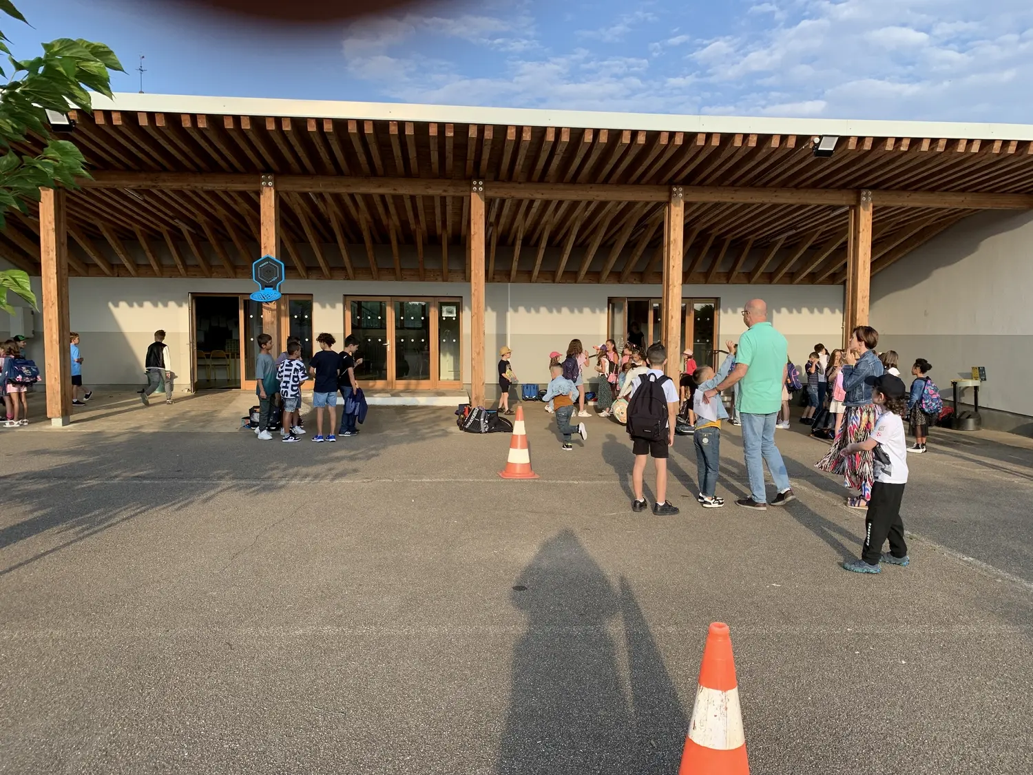 -entrées des élèves des 6 classes élémentaires par la cour côté mairie et sorties sécurisées par le portail côté bibliothèque : barrières de protection et passage protégé et régulé par un agent communal au carrefour de la boulangerie.